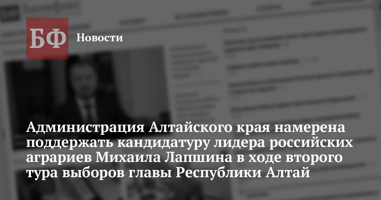 Как известно, первый тур выборов главы Республики Алтай состоялся 16 декабря текущего года. Во второй тур вышли председатель Аграрной партии России Михаил Лапшин и действующий глава РА Семен Зубакин (Лапшин набрал 22,96% голосов республиканских избирателей, а Зубакин 15,2%). Второй тур выборов состоится 6 января 2002 года.