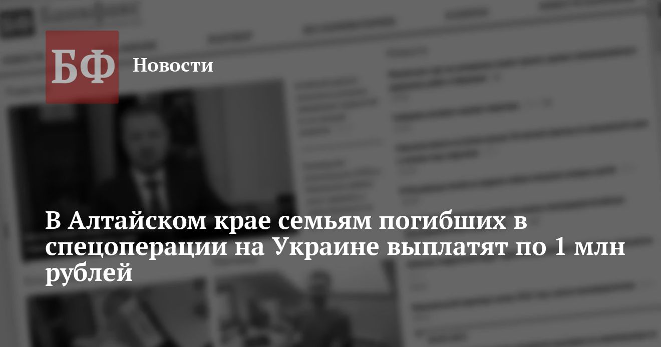 Глава Алтайского края Виктор Томенко поручил выплачивать деньги семьям погибших военнослужащих во время специальной операции на территории Украины и Донбасса. Как сообщила пресс-служба правительства, семьям, понесшим утрату, положено по 1 млн рублей.