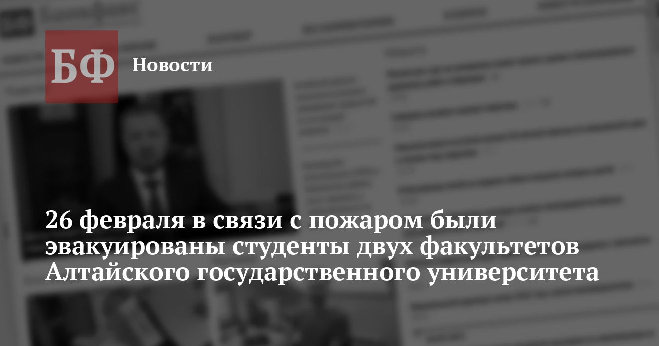 Напомним, что 14 февраля этого года пожар произошел на кафедре физики Алтайского государственного технического университета (АГТУ). Причиной возгорания стало нарушение правил пожарной безопасности при эксплуатации электроприборов. Пожарные также произвели эвакуацию студентов, которых в здании АГТУ в тот момент находилось немного.