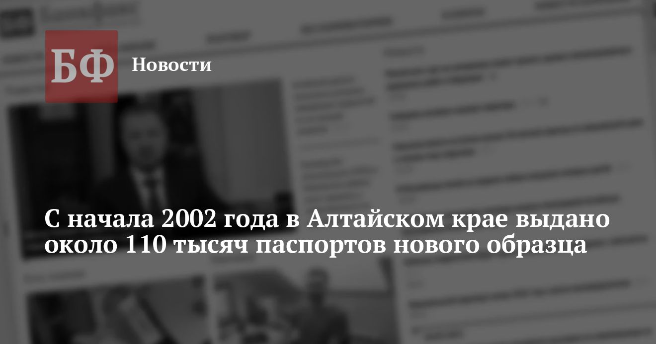 Как сообщили в управлении паспортно-визовой службы ГУВД Алтайского края, только за два месяца 2002 года в крае выдано около 110 тысяч новых паспортов. Таким образом, общая численность, жителей края, получивших документы нового образца, превысила 40%.