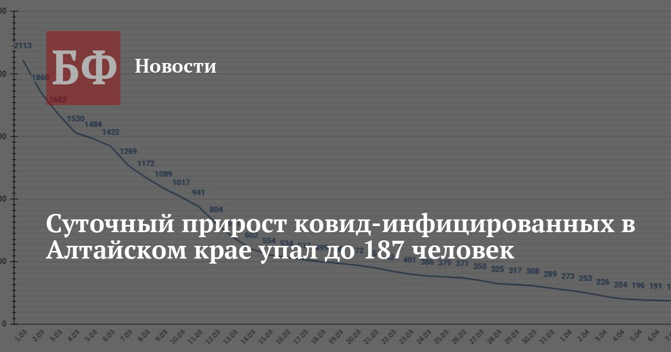Из 187 новых случаев заражения 45 выявили в Барнауле. Больше ни один из муниципалитетов не достиг рубежа даже в 10 случаев — ближе всего к этому показателю приблизился Бийск, где за день выявили девять больных. Таким образом, за весь период пандемии в Алтайском крае выявили 263 387 случаев заражения. Выздоровели 247 612 человек, умерли — 10 084, в том числе девятеро за последние сутки. Из них 8508 скончались непосредственно от COVID-19, а 1576 — по иным причинам.