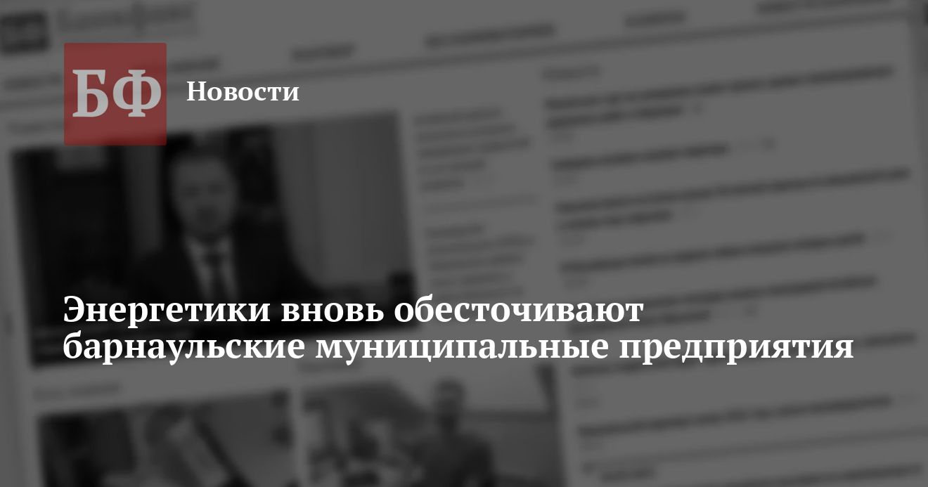 Кроме того 1 марта энергетики намерены полностью прекратить энергоснабжение трамвайно-троллейбусного депо N3 города Барнаула долг этого предприятия составляет 13 млн рублей. Аналогичные меры «Алтайэнерго» намерено предпринять в отношении городского управления «Водоканала» и Лебяжкинского водозабора (долг Водоканала превышает 18 млн рублей).