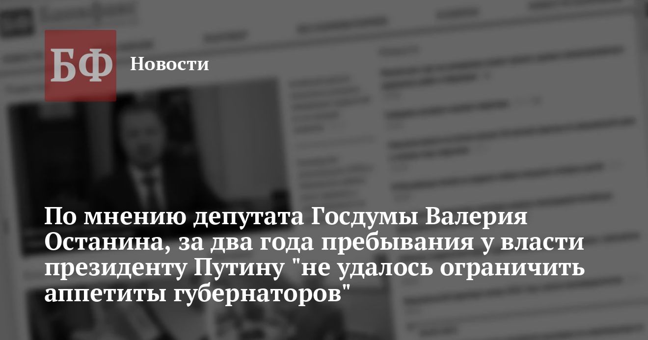 В то же время, по словам Останина за два года президенту удалось укрепить вертикаль власти: «Губернский сепаратизм достиг таких масштабов, что многие главы республик и субъектов федераций издавали законы, напрямую противоречащие Конституции и другим федеральным законам, заявил Останин, То, что региональные власти в значительной мере привели законодательную базу на местах в соответствие с федеральным законодательством заслуга Владимира Путина».