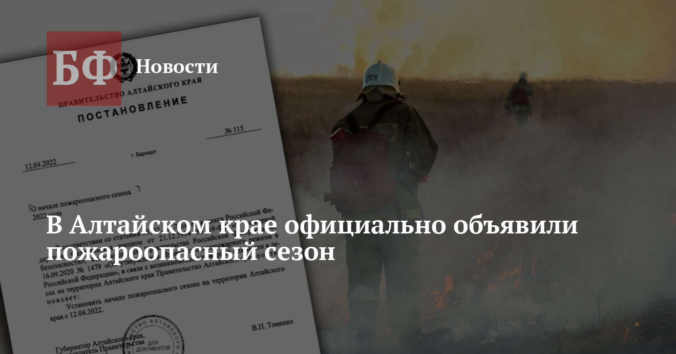 Губернатор Алтайского края Виктор Томенко подписал постановление об объявлении пожароопасного сезона в текущем году с 12 апреля. Документ опубликован на сайте регионального правительства. При этом в ГУ МЧС России по Алтайскому краю на своем сайте отмечают, что уже фиксируют немало случаев возгорания.