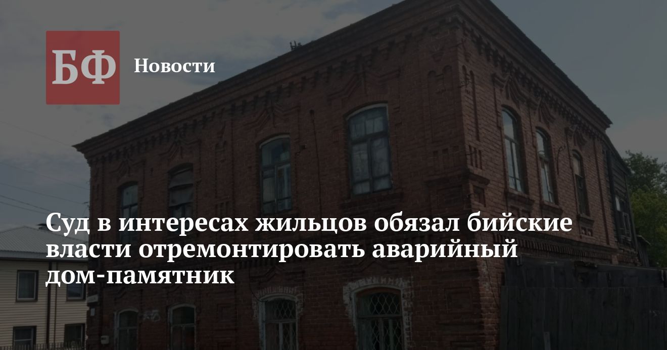 Как указано в сообщении, в Бийский городской суд обратились двое собственников квартир в упомянутом доме. Они указали, что здание в марте 2019 года власти признали аварийным и подлежащим реконструкции, поскольку физический износ колеблется от 50% до 70%. Граждане, полагая, что обязанность по капитальному ремонту лежит на преемнике бывшего наймодателя — администрации Бийска — обращались к чиновникам с требованием исполнить обязанности и привести постройку в порядок. Но власти от проведения капремонта уклонились. Чиновники ссылались на то, что дом был признан аварийным и включен в муниципальную адресную программу, по условиям которой он будет расселен в 2030 году путем изъятия жилых помещений для муниципальных нужд.