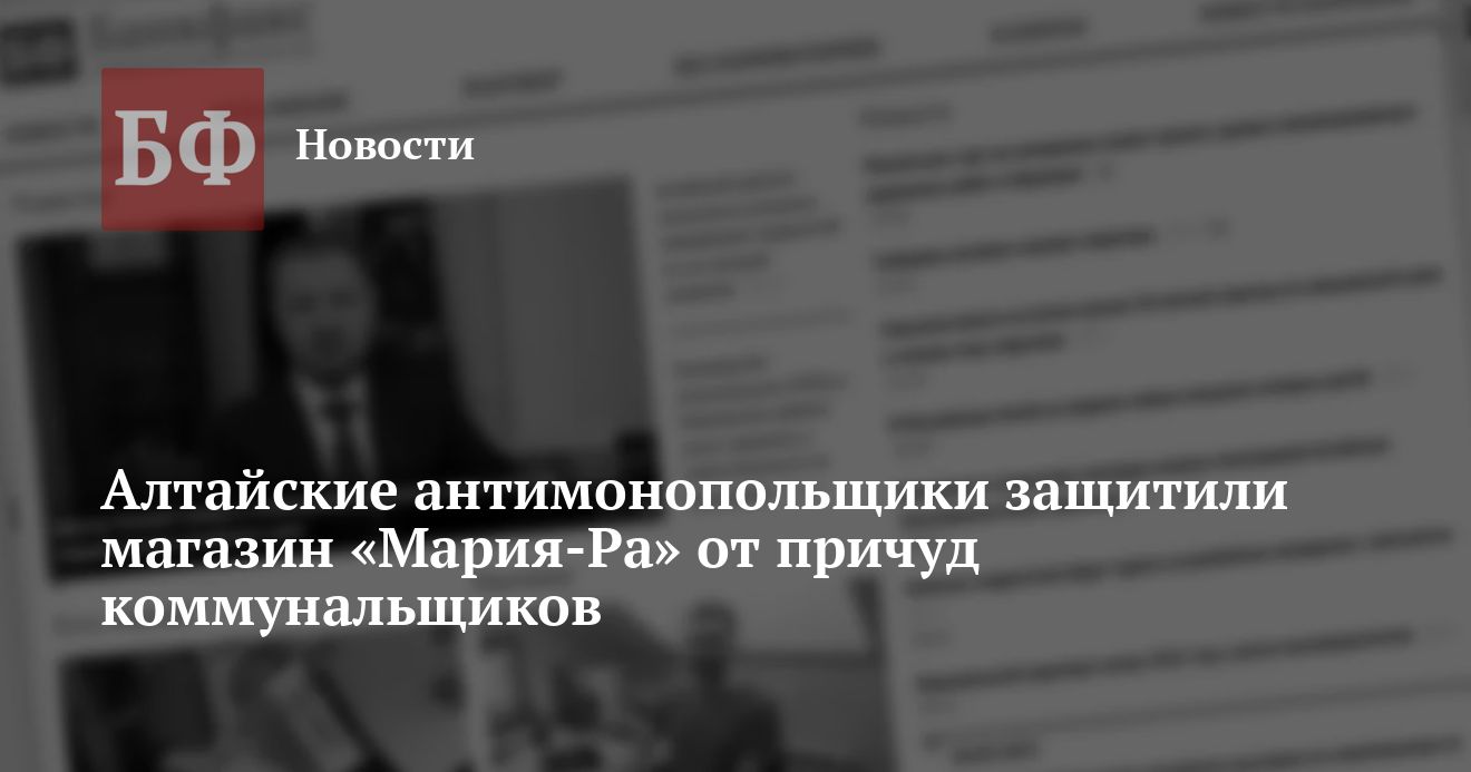 У одного из магазинов сети «Мария-Ра» в райцентре Романово возникли проблемы с коммунальным предприятием из-за счетчиков. Как сообщили в УФАС по Алтайскому краю, ведомство встало на защиту ритейлера и решило проблему, выдав предписание об устранении нарушений.