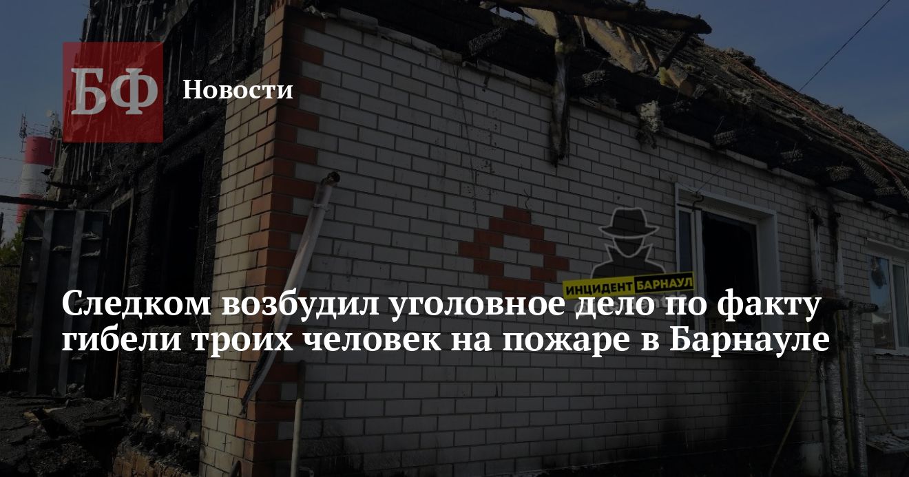 По данным следствия, ночью 19 апреля 2022 года в поселке «Авиатор» в Барнауле произошло возгорание частного дома. В ходе тушения пожара обнаружены тела 51-летней хозяйки, ее 25-летнего сына и 89-летней матери. Предварительно установлено, что очаг находился на веранде первого этажа дома. Находящиеся в жилище люди не смогли покинуть помещение и предположительно отравились продуктами горения.