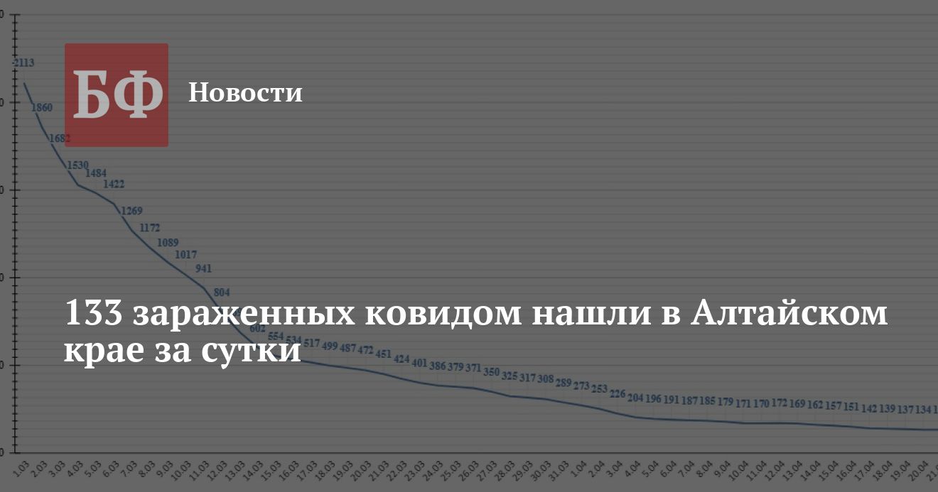 21 апреля в регионе зафиксировали 133 положительных результатов теста на коронавирус. Наибольшее число зараженных наблюдалось в Барнауле — 29, Руцбовске — 12 и Бийске — 9. Общее число выявленных случаев достигло 265 588. За сутки выздоровели 165 человек, а все время — 254 043.