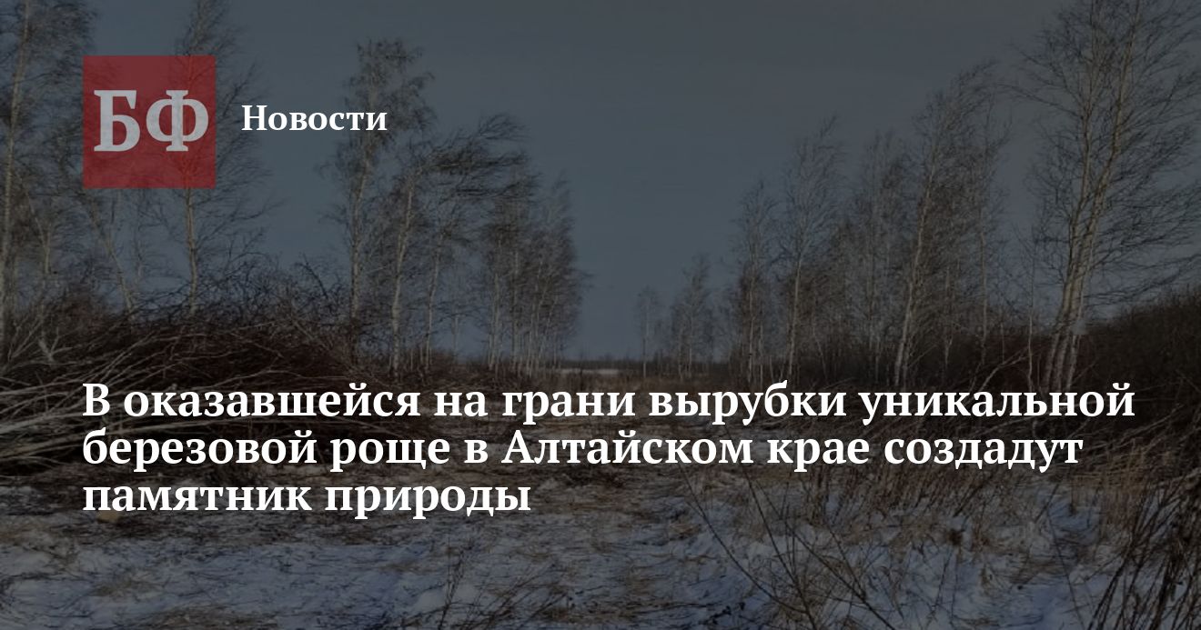 На территории березовой согры в Усть-Калманском районе создадут новый памятник природы. Для наделения уникальной березовой рощи природоохранным статусом подготовлен проект постановления, опубликованный на сайте алтайского Минприроды. Начальник отдела охраны окружающей среды администрации района Александр Хохлов сообщил «Банкфаксу», что в настоящий момент участок земли, о котором ранее велись судебные споры в связи с вырубкой деревьев, по-прежнему находится в руках предпринимателя, в связи с чем властям в дальнейшем придется каким-то образом с ним договариваться.
