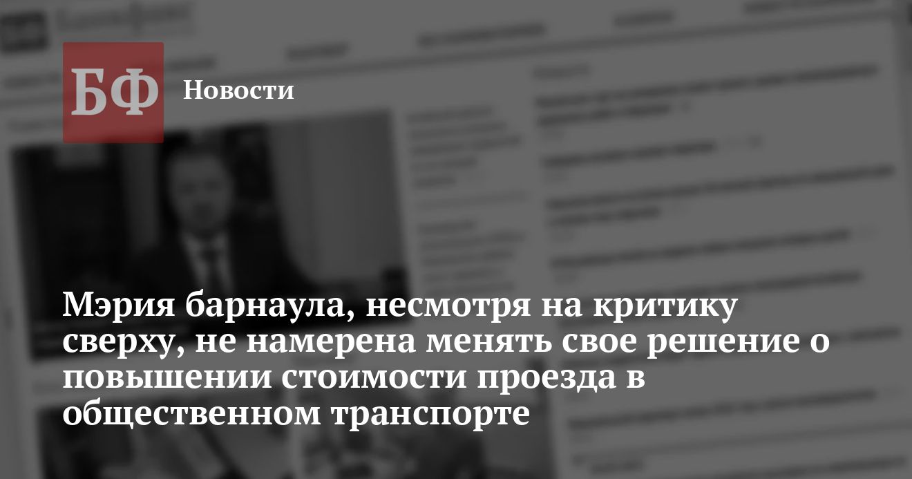 Как известно, решение о повышении стоимости проезда на общественном транспорте на 1 рубль, вступившее в силу с 1 апреля с.г., встретило резко отрицательную реакцию городской общественности и вышестоящих властей. О нем негативно высказались представители как «левой», так и «правой» части политического спектра, а алтайские профсоюзы обвинили мэра Владимира Баварина в нарушении законодательства и трехстороннего соглашения. 8 апреля о необоснованности повышения цен в условиях значительного падения стоимости ГСМ высказался алтайский губернатор Александр Суриков.