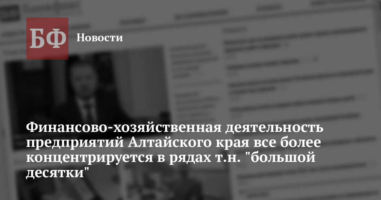 Так, из 911 млн. рублей, поступивших в федеральный бюджет за первый квартал, 67% приходится на долю десяти крупнейших плательщиков. Их список довольно стабилен: ОАО «Иткульский спиртзавод», Зональный район ОАО «Алтайэнерго», Барнаул ГУП «Бийский олеумный завод», Бийск ОАО «Барнаульский ликеро-водочный завод», Барнаул ОАО «Алтай кокс», г. Заринск Алтайское отделение Западно-Сибирской железной дороги МПС РФ ОАО «Алттрак», г. Рубцовск ОАО «Барнаултрансмаш», Барнаул Филиал Западно-Сибирского предприятия РАО ЕЭС России Новоалтайское отделение Сбербанка России, Новоалтайск По данным пресс-службы краевой налоговой инспекции, за март никаких перемен в десятке крупнейших плательщиков бюджета не произошло. Более того, объем налоговых платежей этих предприятий в общей доле платежей вырос еще на 5 процентов. Значительно его увеличили Бийский олеумный завод, «Алтайэнерго», предприятия Западно-Сибирской железной дороги. Без недоимки работают коллективы Иткульского спиртзавода, Алтайского отделения Западно-Сибирской железной дороги и Новоалтайского отделения Сбербанка России.