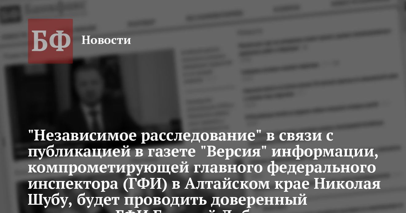 Как сообщалось, на прошлой неделе газета «Версия» опубликовала развернутый материал «Криминальный инспектор», в котором обвинила Николая Шубу в активном участии в криминальном переделе собственности в регионе. Сразу после публикации ведомство Шубы заявило о готовности привлечь группу независимых журналистов для проведения независимого расследования изложенных в статье фактов. Предполагалось, что главный федеральный инспектор не будет оказывать давления на ход расследования, даже в том случае если факты, изложенные в публикации, будут частично или полностью подтверждены.