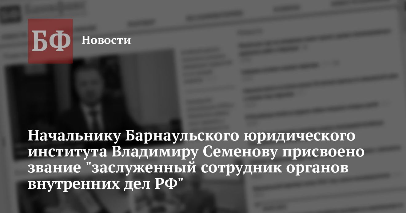 Как сообщил пресс-секретарь Главного федерального инспектора в Алтайском крае Константин Филатов, указом президента РФ начальник барнаульского юридического института МВД России Владимиру Семенову присвоено звание «заслуженный сотрудник органов внутренних дел РФ».