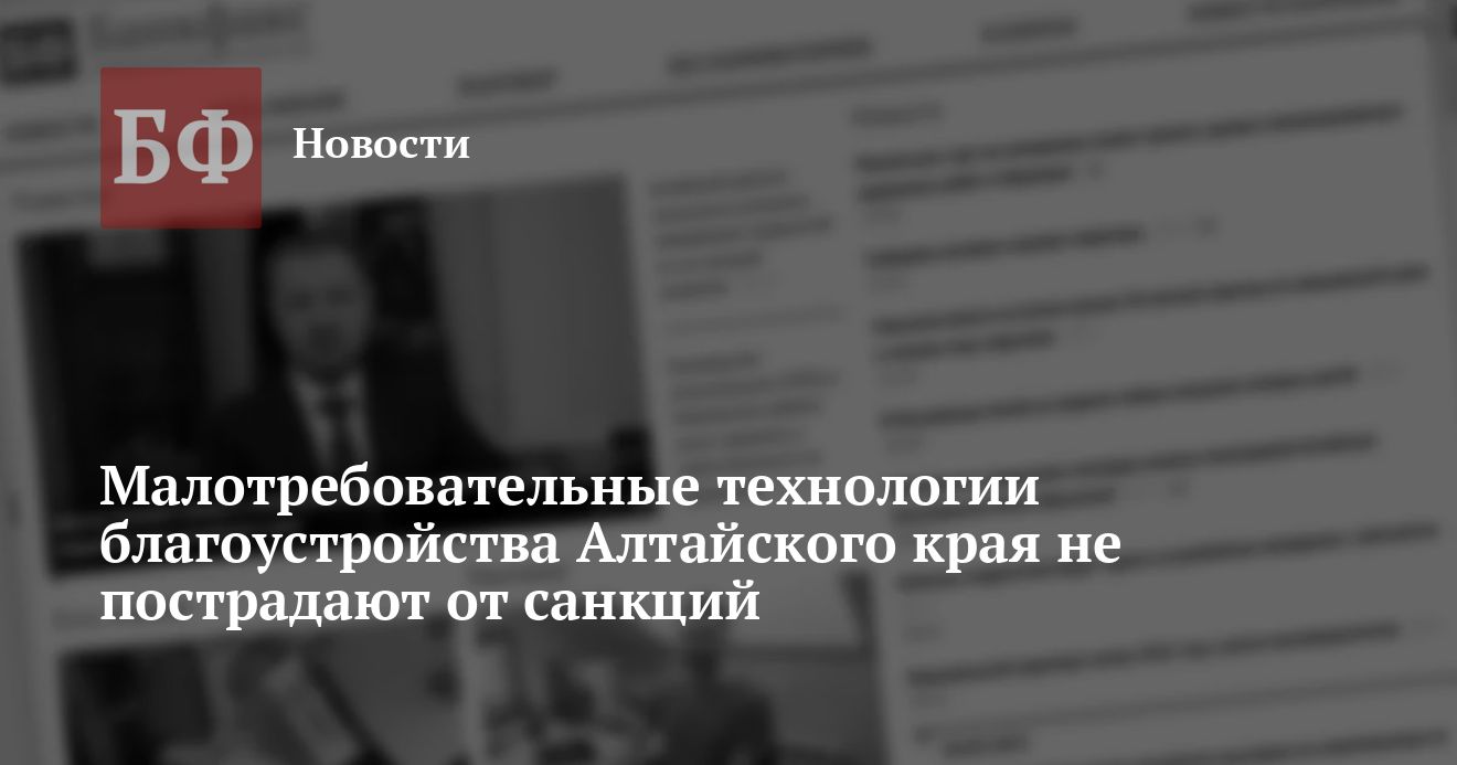В 2022 году в Алтайском крае благоустроят почти 180 территорий, в том числе 55 общественных пространств. Министр строительства региона Иван Гилев во время онлайн-конференции сообщил, что на эти цели направят около 800 млн рублей. Он отметил, что санкции почти не окажут влияния на работу в этом направлении, так как оно не столь технологично.