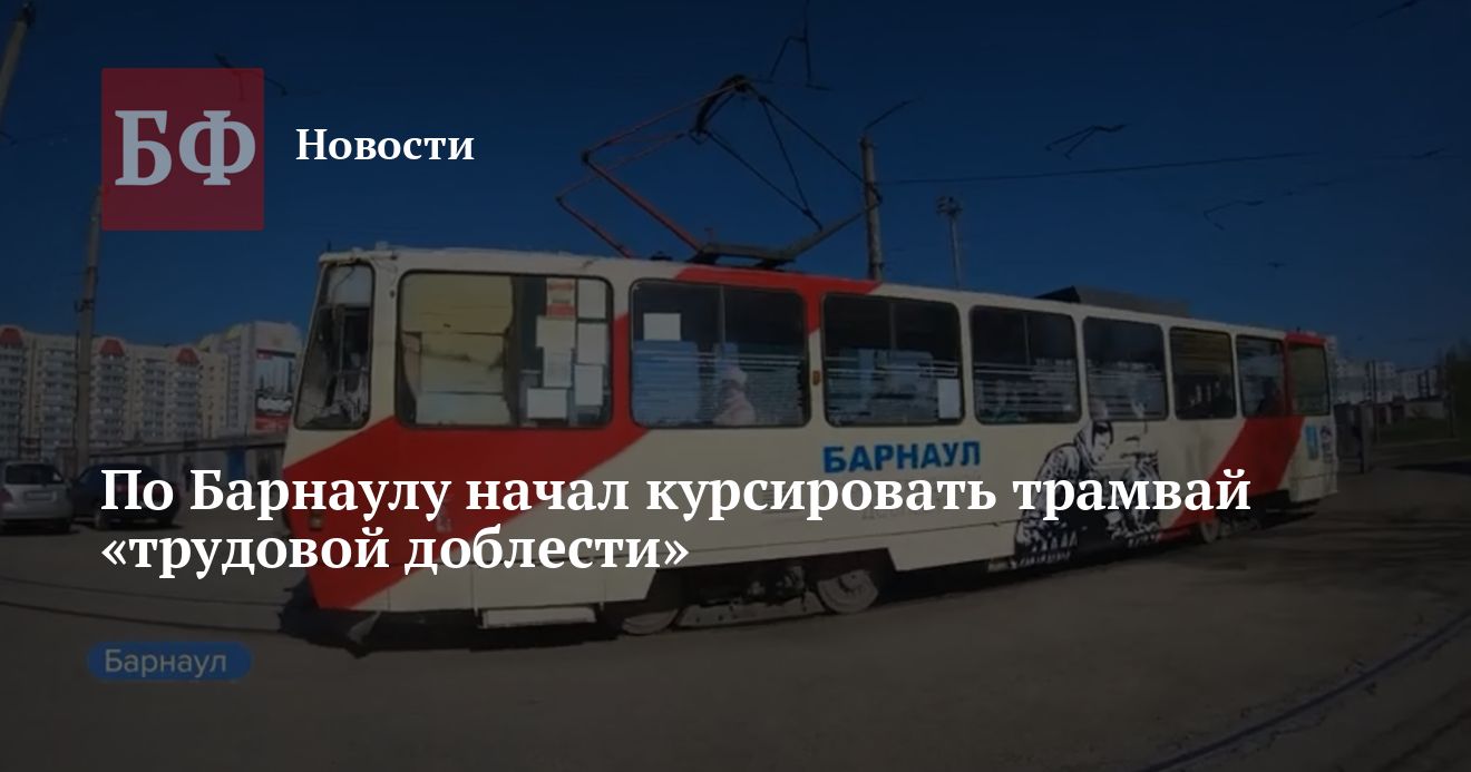 В Барнауле в преддверии Дня Победы тематически оформили один из трамваев в честь присвоения краевому центру звания города трудовой доблести. Как сообщают «Вести-Алтай», на кузов нанесена художественная роспись, а в салоне размещена информация о трудовых подвигах горожан. Во время поездок в тематическом трамвае будут звучать рассказы о жизни Барнаула в годы Великой Отечественной войны.