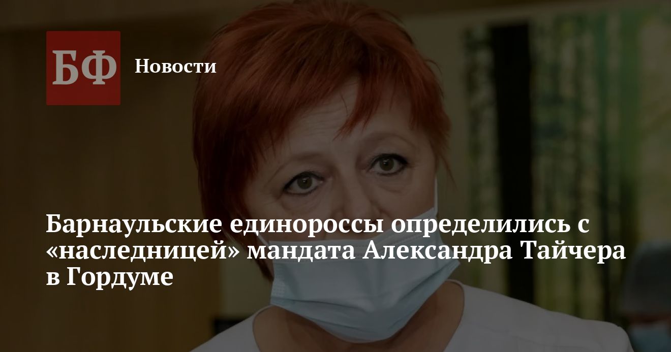 Мандат единоросса Александра Тайчера в Барнаульской гордуме планируют передать главврачу городской поликлиники № 9 Инне Анисимовой. Об этом «Банкфаксу» сообщили в краевом исполкоме «Единой России». Отметим, что в прошлом году медик уже претендовала на статус депутата, но в Алтайском Заксобрании.