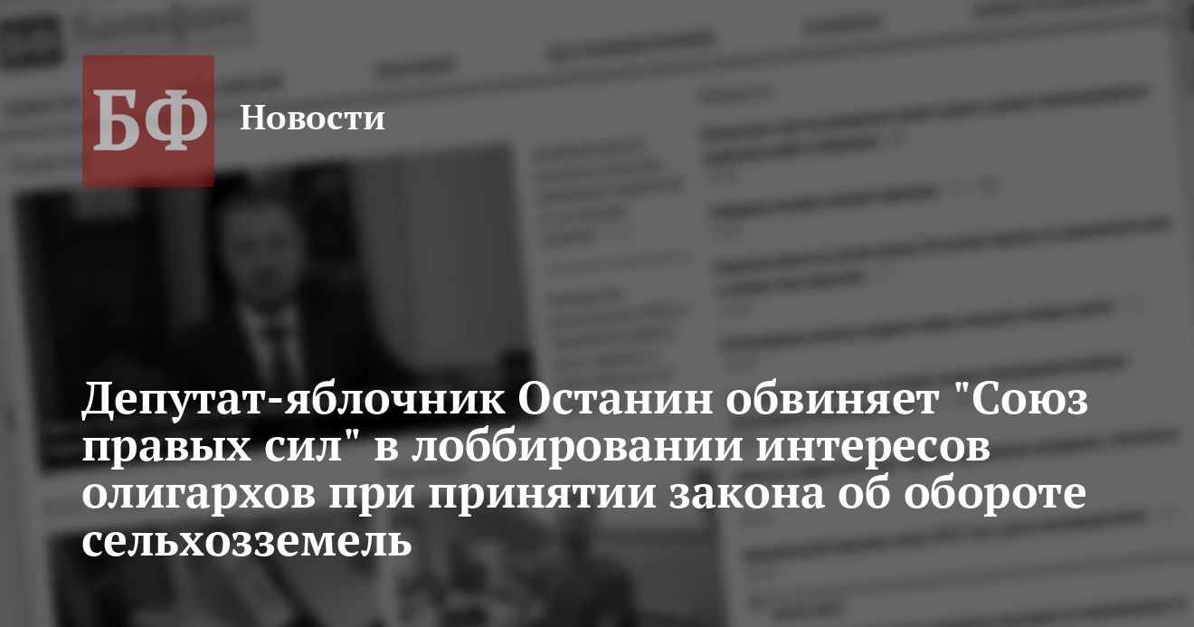В своем пресс-релизе, распространенном 17 мая, депутат Госдумы Валерий Останин, считает что «ни один из восьми представленных на рассмотрение Госдумы законопроектов, включая правительственный, не решает основных проблем, связанных с оценкой земли и коррупцией при решении земельных вопросов». Особо негативную оценку депутата-яблочника вызвал законопроект СПС, предполагающий продажу земли на аукционах. По мнению Останина, это является второй попыткой создать в стране дискредитировавший себя механизм ваучерной приватизации. «Крестьяне, о которых заботятся все политики, как были, так и остаются просто батраками. Современные агробароны ничем не лучше олигархов от нефтегазовых и металлургических сфер экономики," заявил он. Бийский депутат убежден, что в данное время необходим жесткий контроль за использованием пашенных земель, а также реальная борьба с теневой экономикой в сфере сельского хозяйства. Поэтому он призвал отказаться от попыток принятия данного закона в парламенте, считая, что он может быть принят только референдумом.