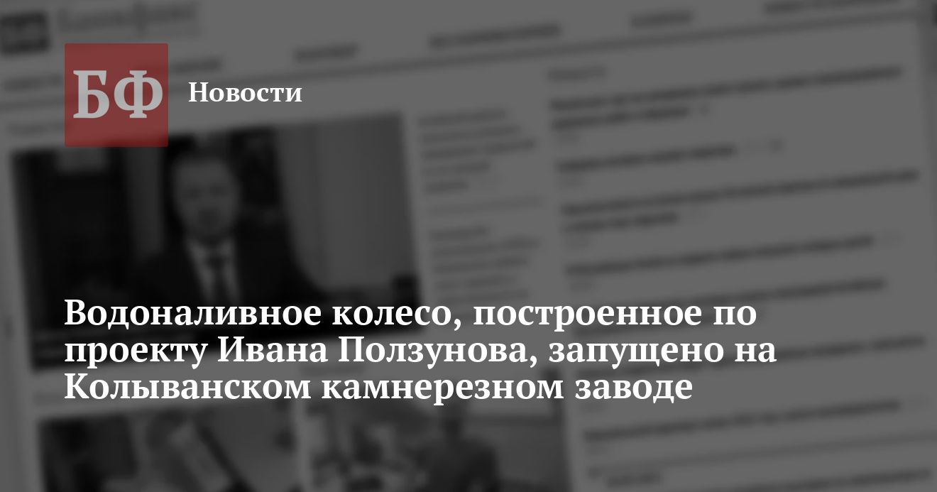 17 мая на Колыванском камнерезном заводе запущено водоналивное колесо, построенное по проекту создателя паровой машины Ивана Ползунова и восстановленное специалистами Алтайского государственного технического университета.