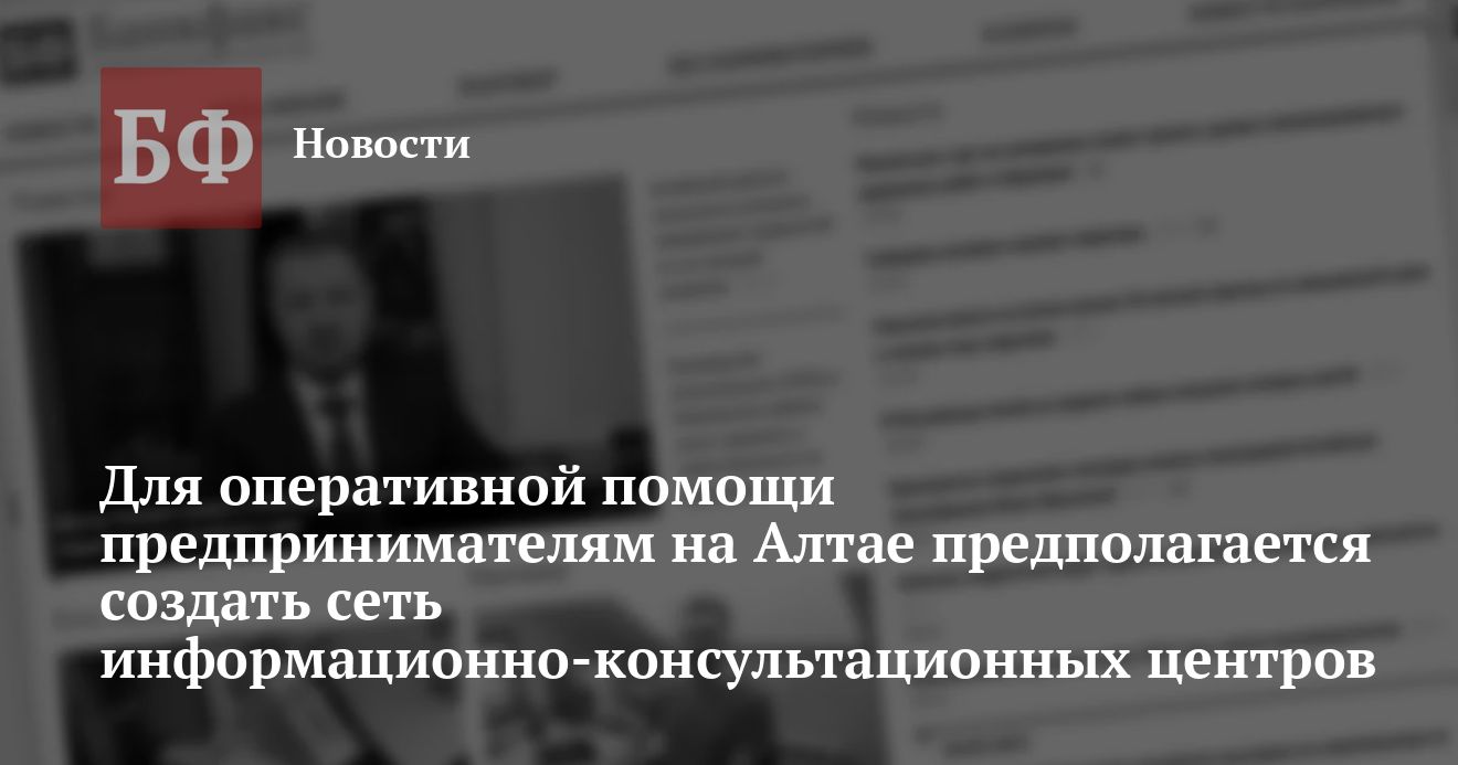 Как сообщили в краевом комитете по поддержке предпринимательства, в ближайшее время на Алтае будет создана сеть информационно-консультационных центров (ИКЦ), предназначенных для оказания оперативной помощи предпринимателям. В число услуг ИКЦ входит поиск для представителей алтайского бизнеса деловых партнеров за рубежом, консультации граждан, намеревающихся открыть собственное дело и т.д.