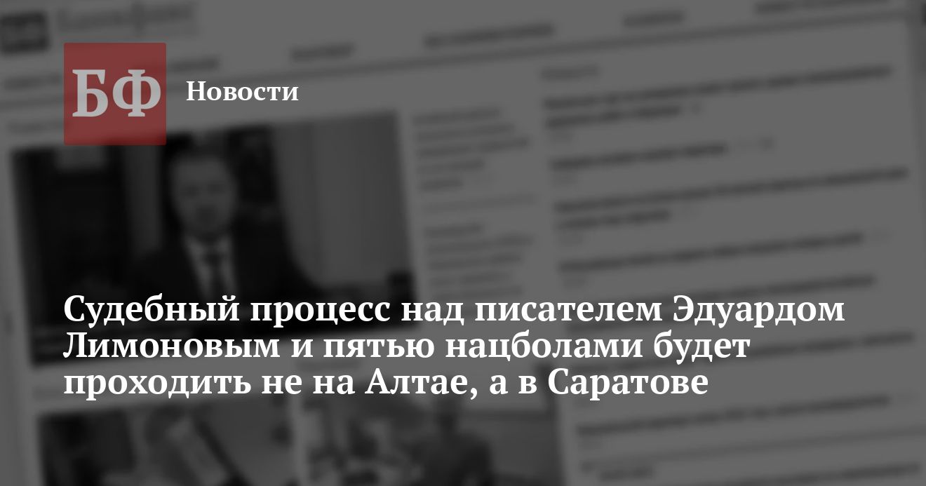 Хотя ФСБ настаивало на проведении суда на Алтае, сами представители Лимонова выступили против. По мнению адвоката писателя Сергея Беляка, такое решение означало бы срыв процесса у подсудимых нет средств на оплату столь дальних поездок своих защитников. В результате Верховным судом было принято решение о проведении процесса в Саратове, куда на днях и будут этапированы Эдуард Лимонов и его боевые товарищи.