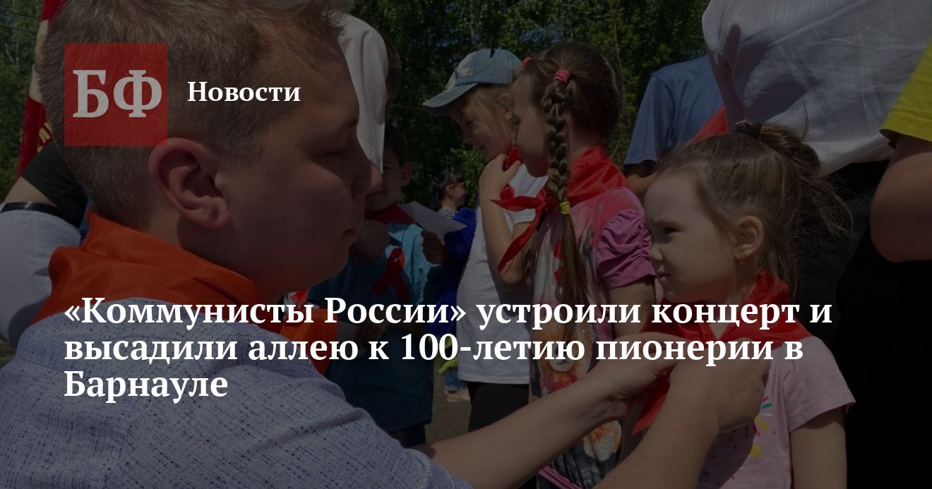 21 мая Алтайский крайком Компартии «Коммунисты России» совместно с Барнаульским зоопарком провели праздничные мероприятия в честь 100-летия образования Всесоюзной пионерской организации имени В.И. Ленина. Комроссы организовали праздничный концерт, в рамках которого в том числе была представлен вариант образов современных пионеров, а также приняли участие в высадке аллеи к вековому юбилею движения.