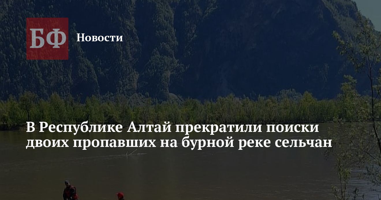 В Улаганском районе Республики Алтай временно прекратили поиски двух пропавших на реке местных жителей. Как сообщает пресс-служба ГУ МЧС по региону, уровень воды начал подниматься, что осложняет поисковые мероприятия. В итоге их решили отложить до нормализации ситуации.