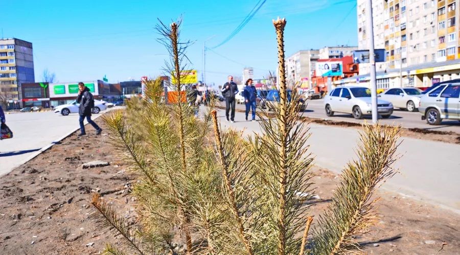 Уже в октябре на нечетной стороне улицы Деповской высадили около десяти маленьких сосен — высотой не более 50 см. И сейчас они, по словам жительницы Барнаула, снова чахнут из-за отсутствия регулярного полива.