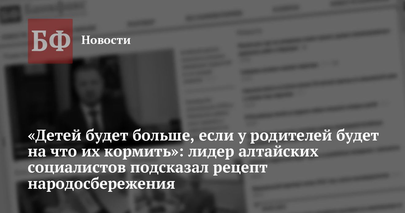 Как сообщают алтайские справедливороссы на своем сайте, лидер партии Сергей Миронов уверен, что повышать рождаемость можно лишь путем борьбы с бедностью и кардинального улучшения благосостояния семей с детьми. «Не один, не два, а три ребенка — вот что должно быть нормой для российской семьи», — приводят социалисты комментарий политика.