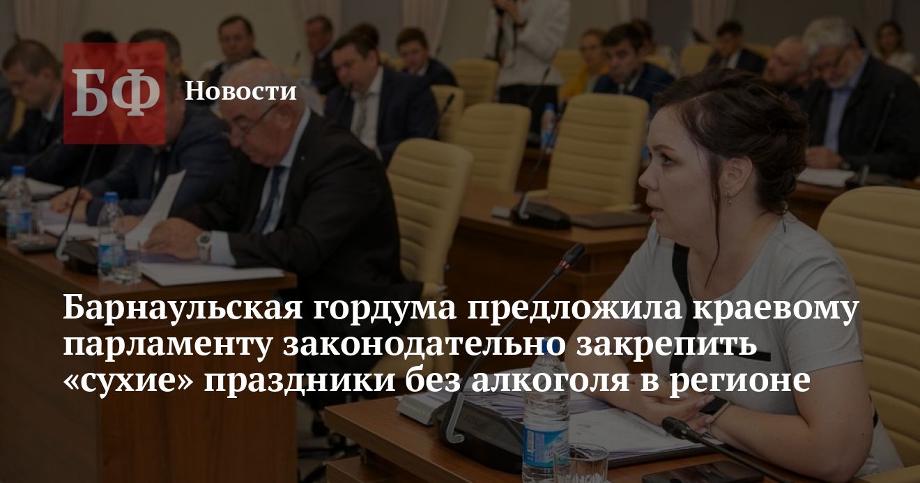 На прошедшей сессии депутаты БГД единогласно поддержали инициативу о внесении проекта закона Алтайского края в АКЗС «О регулировании отдельных отношений в сфере розничной продажи алкогольной и спиртосодержащей продукции на территории Алтайского края». Этот проект направлен на установление единого регионального запрета на розничную продажу алкогольной продукции в определенные дни «в целях обеспечения общественного порядка во время проведения праздничных массовых мероприятий и безопасности граждан». Иной мотивировки на сайте Думы не приводится. Указано лишь, что такие же ограничения уже введены в 52 субъектах РФ (Кузбасс, Республика Алтай, Тюменская область и так далее), и что жители Алтайского края законопроект якобы уже поддержали. Каким образом проводился срез общественного мнения по этому вопросу, не уточняется.