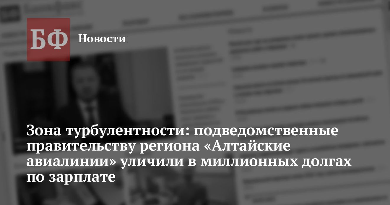 ООО «Алтайские авиалинии», учредителем которого является управление имущественных отношений Алтайского края, допустило задолженность по зарплате перед своими сотрудниками. Как сообщает пресс-служба Западно-Сибирской транспортной прокуратуры, деньги были выплачены после вмешательства надзорных органов — всего более 3,5 млн рублей перед 80 работниками. В прокуратуре отмечают, что причиной невыплаты зарплаты стала финансовая нестабильность предприятия. По данным портала Госзатраты, основным клиентом «Алтайские авиалинии» в области госзакупок выступает Минздрав Алтайского края. Воздушный транспорт привлекается ведомством для оказания скорой медицинской помощи.