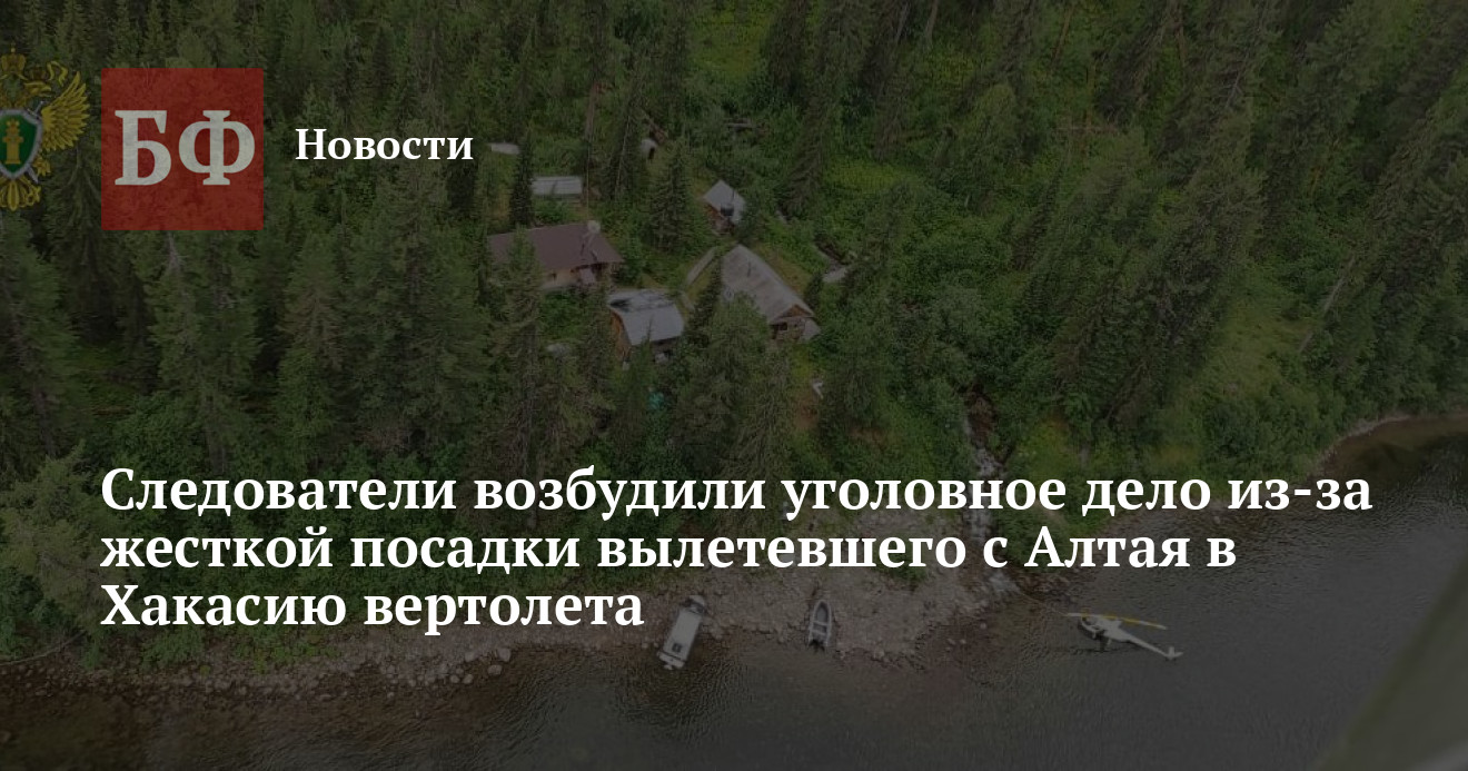 Органы СУ СКР по Республике Алтай возбудили уголовное дело по факту жесткой посадки в Хакасии частного вертолета, вылетевшего с лыжной базы в районе Телецкого озера. Об этом сообщает пресс-служба ведомства. Кроме того, свою проверку проводит Западно-Сибирская транспортная прокуратура. В Telegram-каналах пишут, что судно может принадлежать Борихинскому пивзаводу.
