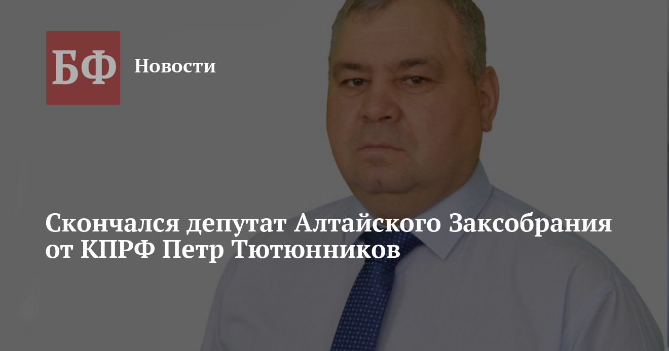 UPD: Губернатор Алтайского края Виктор Томенко выразил искренние соболезнования родным и близким депутата Алтайского краевого Законодательного Собрания Петра Тютюнникова, в связи с его уходом из жизни, сообщает пресс-служба краевого правительства. Избирательная комиссия Алтайского края также выразила глубокие соболезнования родным и близким. «Искренне разделяем горечь утраты», — сказано в сообщении Крайизбиркома.