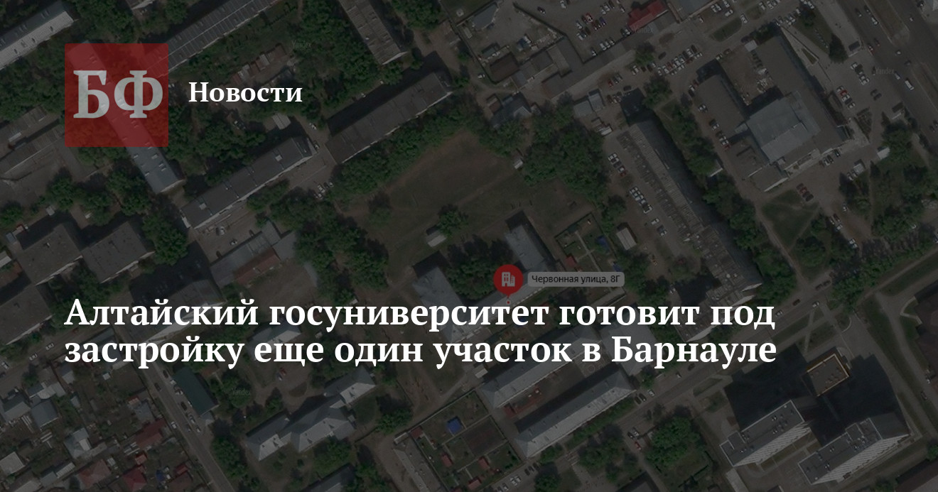 Речь идет об участке близ Барнаульского городского ДЮЦ на Червонной, 8 «Г». Это довольно большая территория, которая сейчас ничем не занята, если не считать небольшое здание в центре. Судя по всему, это гаражи. Вуз планирует построить здесь новый корпус общежития, недалеко от другого своего аналогичного объекта на Червонной, 5 («Универ-Сити»). Для этого МУП «Землеустройство и геодезия» по заказу АлтГУ уже подготовило проект межевания. Сейчас он проходит общественные обсуждения. Согласно предложенной схеме, под само здание выделят участок площадью 6,65 тысяч кв. м, и еще один на 215 кв. м — под тротуар, который будет вести к частной школе, расположенной неподалеку. Обсуждения продлятся до 21 июля.