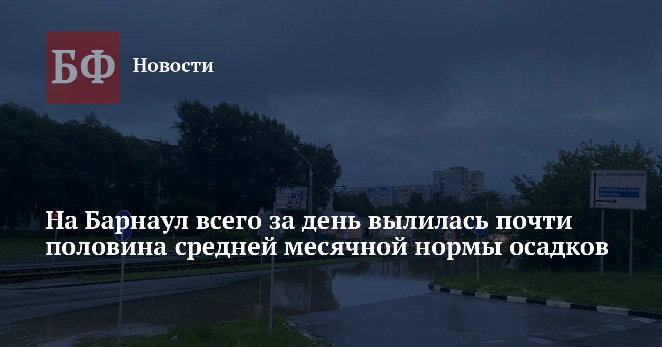 В Барнауле 6 июля прошел сильный дождь, который буквально затапливал улицы и даже производственные здания, чем в соцсетях активно делились горожане. Они полагали, что осадки были вполне обычными и винили в ситуации городскую инфраструктуру. Однако, как рассказали «Банкфаксу» в Алтайгидромете, на город всего за день вылилось около 40% от средней многолетней нормы месяца.