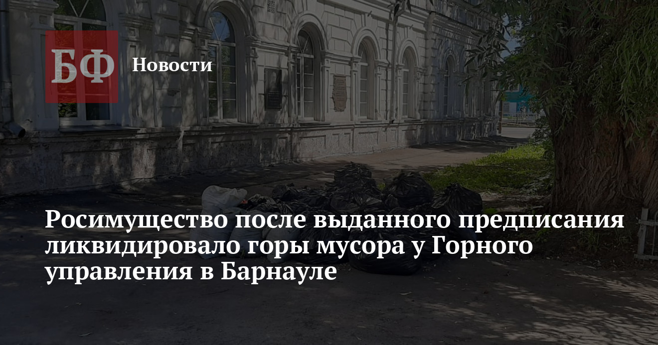 Межрегиональное территориальное управление Росимущества в Алтайском крае и Республике Алтай (МТУ Росимущества) провело уборку вокруг исторического здания на проспекте Красноармейском, 21 на Демидовской площади в Барнауле — так называемого Горного управления. К этому ведомство принуждало управление государственной охраны объектов культурного наследия Алтайского края (Алтайохранкультура), поскольку памятник с 2020 года находится на балансе федеральной структуры. С тех пор и до последних дней, как отмечали горожане, территория старинного дома ни разу убиралась, и стала напоминать откровенную свалку.