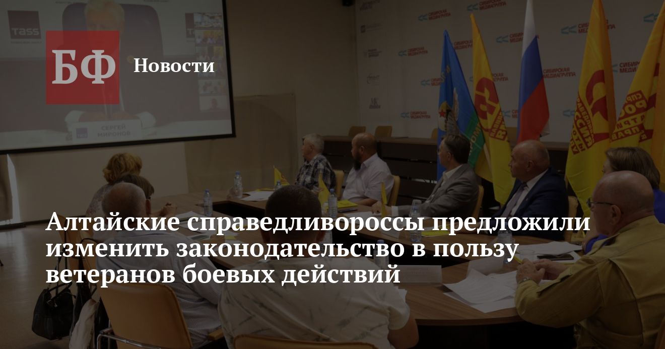 13 июля партия «Справедливая Россия — За правду» провела в Москве всероссийское совещание представителей советов по делам ветеранов боевых действий, в рамках которого прозвучали предложения по улучшению положения этой категории. Речь идет о кредитных и пенсионных льготах, улучшении жилищных условий и оформлении статуса ветеранов для участников специальной военной операции. Члены Совета от Алтайского края, который возглавляет лидер реготделения, депутат Госдумы Александр Терентьев, также сформулировали инициативы — например, уравнять все категории ветеранов боевых действий.