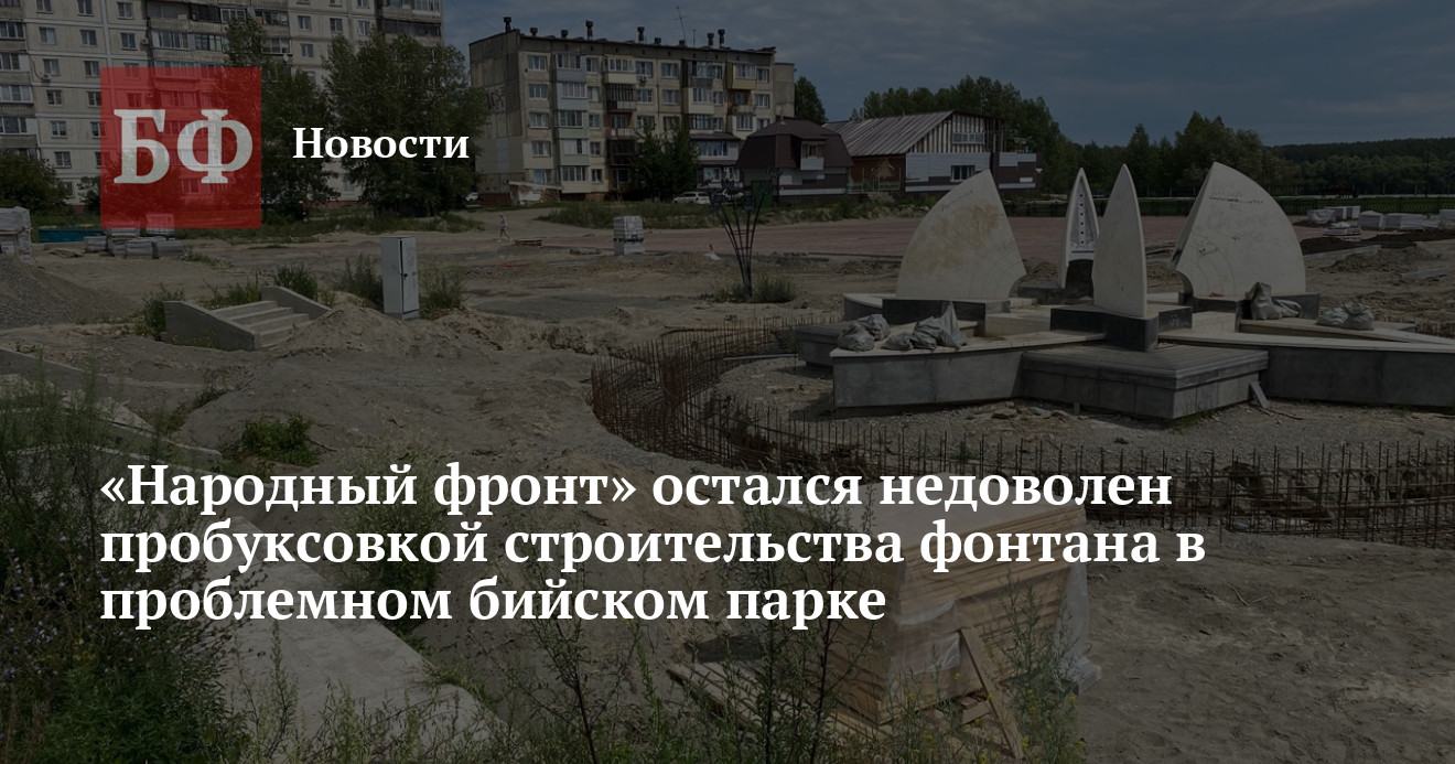 Как указывает реготделение «Народного фронта» в своем паблике «ВКонтакте», в парке на Зеленом клине в Бийске два подрядчика одновременно должны вести работы по строительству фонтана и благоустройству территории, затем третий установит игровое и спортивное оборудование. И если тротуарную плитку рабочие укладывают даже в выходные, то на фонтане за четыре недели установлен только арматурный каркас. «А ведь на реанимацию появившегося за „Ривьерой“ два года назад фонтана и увеличение размеров „водной зоны“ администрация города готова потратить около 15 млн рублей. По муниципальному контракту срок выполнения работ по ремонту фонтана — до 31 августа 2022 года. Счет идет фактически на дни, но результаты обустройства практически не видны», — указывает ОНФ.