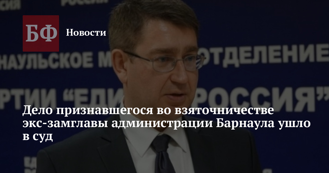 В суд было направлено уголовное дело в отношении бывшего главы Центрального района Барнаула. Об этом сообщают пресс-службы прокуратуры и СУ СКР по Алтайскому краю. Его обвиняют в получении взятки в значительном размере. Согласно изложенным обстоятельствам и данным источников «Банкфакса», речь идет о Юрии Еремееве, который до конца прошлого года занимал пост вице-мэра Барнаула. Ранее сообщалось, что он уже дал признательные показания.