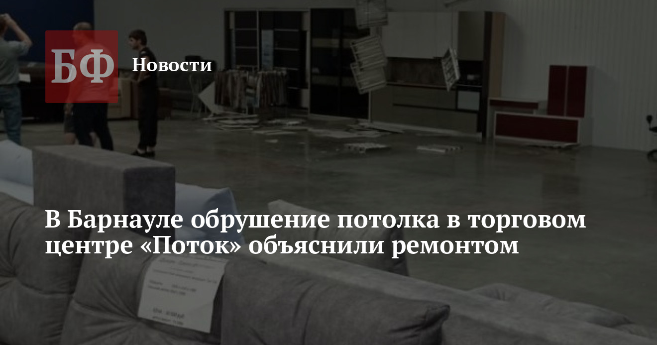 В Барнауле произошло обрушение потолка в здании торгового центра «Поток» на проспекте Космонавтов, 8/2, сообщает и приводит фотофакты подписчица паблика «Инцидент Барнаул», ставшая очевидцем происшествия. По ее словам, магазин, несмотря ни продолжающееся осыпание потолочной плитки, продолжает работать. Между тем представитель администрации ТЦ заявил «Банкфаксу», что случившееся связано с некими ремонтными работами. С его слов, «никаких происшествий не было».