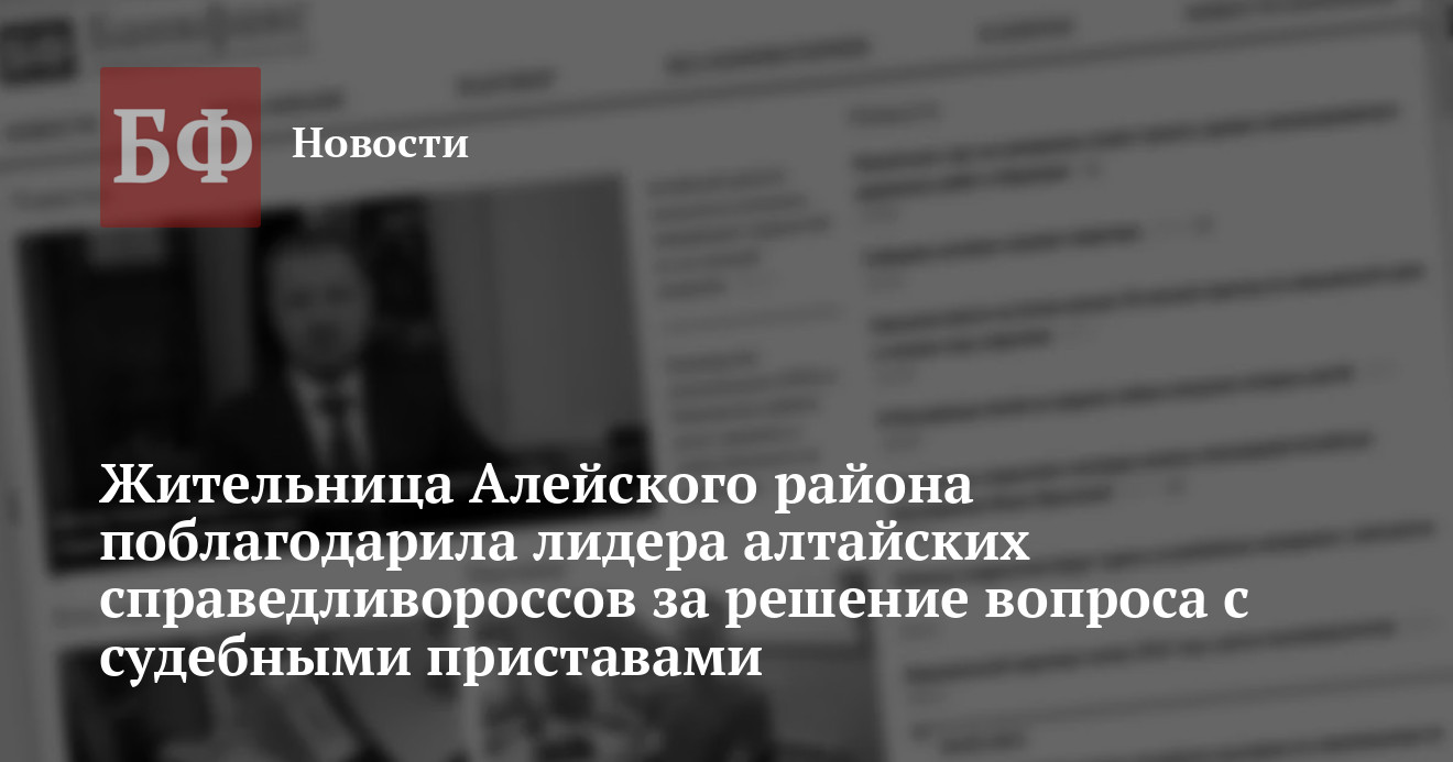 В Общественную приемную депутата Госдумы, лидера алтайских социалистов Александра Терентьева пришло письмо, в котором жительница поселка Алейский Алейского района поблагодарила народного избранника за то, что он поспособствовал урегулированию ситуации с приставами, которые списывали ее пенсию. Подробности сообщаются на партийном сайте.