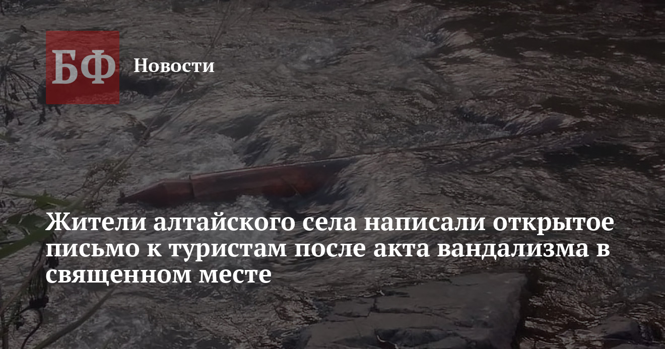 Жители села Бешпельтир после акта вандализма на роднике в урочище Каратурук опубликовали открытое письмо, адресованное туристам и приезжим, с просьбой уважать традиции алтайского народа. Владельцев баз просят разъяснять своим гостям правила поведения в святых местах. «Мы возмущены! Слов нет, как обидно!» — пишут граждане.