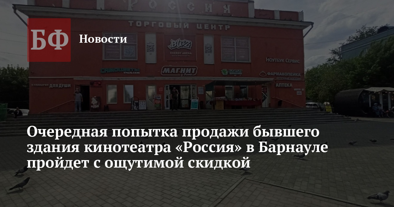 Собственник барнаульского ТЦ «Россия» снова пытается реализовать недвижимость, несмотря на прошлые несостоявшиеся попытки. Строение площадью 2260,3 кв. м выставили на продажу 22 августа. Оно расположено на земельном участке в 2925 кв. м, который находится в долгосрочной аренде. В качестве главного преимущества подчеркивается его локация на проспекте Ленина, 71. Это красная линия с высокой транспортной доступностью, неподалеку находится остановка и важные объекты: краевой главк МВД, здание алтайского правительства, университеты, кафе, рестораны, офисы крупных компаний и т. д. Под самим объектом имеется бомбоубежище.