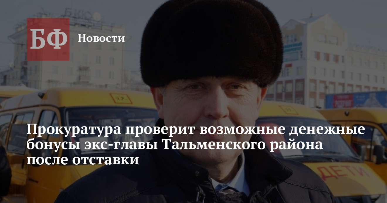Замена добровольной отставки бывшего главы Тальменского района Сергея Самсоненко на принудительное удаление в связи с коррупционными нарушениями стала поводом для новой проверки. Прокуратура Алтайского края в ответе на запрос «Банкфакса» сообщила, что предметом интереса являются начисления, которые могли быть положены ему после ухода по собственному желанию.