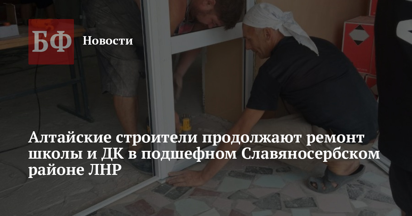 Алтайские подрядные организации ремонтируют социальные объекты в подшефном Славяносербском районе Луганской Народной Республике. Как сообщает пресс-служба райадминистрации и передает правительство Алтайского края, сейчас работы ведутся в школе села Трехизбенка и в Доме культуры поселка Металлист.