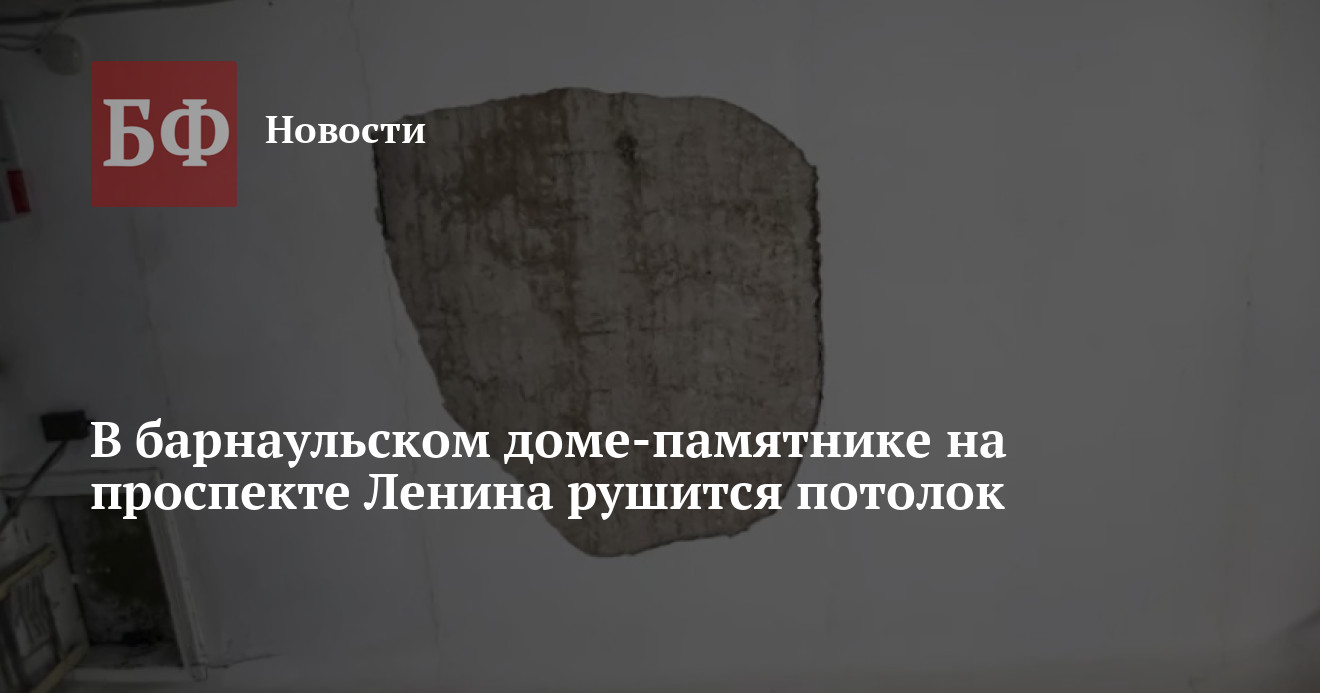 В барнаульском пятиэтажном доме по проспекту Ленина, 80, который соседствует со знаменитым Домом под шпилем и выполнен с ним в едином стиле, обрушился потолок в подъезде № 2. Как пишет «Толк», жильцы считают произошедшее отголоском некачественного текущего ремонта крыши, проведенного 10 лет назад. В ООО «Азимут-Компани», управляющем домом, заявили изданию, что в 2021 году кровлю планировалось починить в рамках капитального ремонта, но по неназванным причинам до работ дело не дошло. Со слов директора УК, это зона ответственности регионального оператора «Фонда капитального ремонта многоквартирных домов».