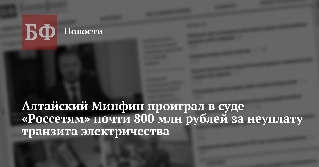 Арбитражный суд вынес решение по иску ПАО «Россети Сибирь» к Минфину Республики Алтай о взыскании крупной суммы долга за транзит электроэнергии. Из материалов дела следует, что заявление компании почти на 800 млн рублей было полностью удовлетворено.