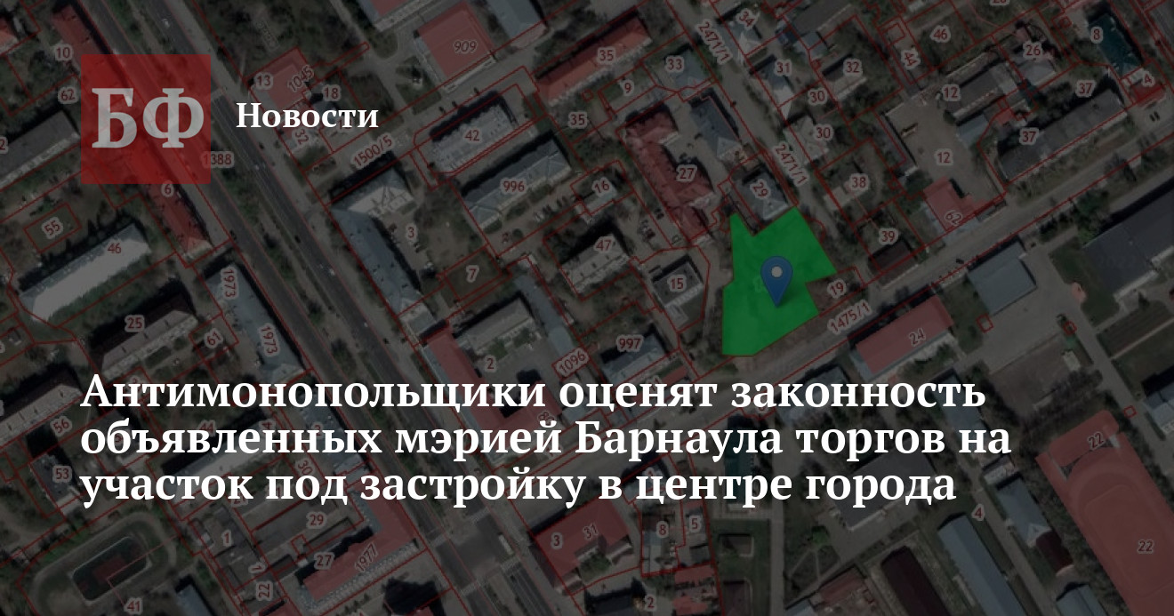 Торги на право аренды участка под застройку в самом центре Барнаула могут не состояться из-за жалобы компании, которая, по ее утверждению, ранее уже получила лицензию добывать на этой земле воду. Об этом сказано на Официальном сайте РФ для размещения информации о проведении торгов. Заявитель полагает, что антимонопольщики должны обязать власти аннулировать аукцион в данном случае. При этом компания и сама оказалась связана с крупным барнаульским застройщиком.