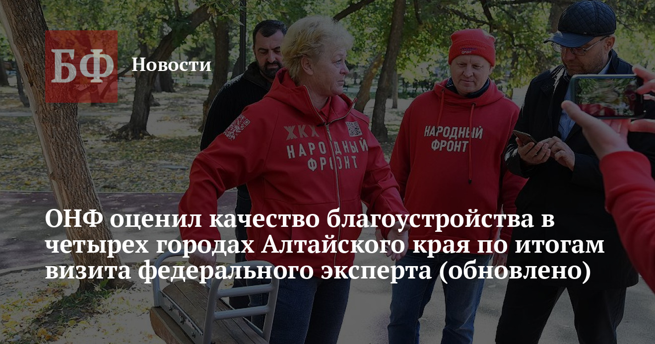 Эксперт Общероссийского народного фронта (ОНФ) Светлана Калинина в ходе визита в Алтайский край высказала меньше всего претензий при мониторинге объектов благоустройства в Барнауле, рассказал ИА «Банкфакс» ее коллега — руководитель алтайского исполкома «фронтовиков» Сергей Войтюк. Среди огрехов, на которые обратила внимание Калинина, — использование геоплитки на тротуарах, что встречается в Мизюлинской роще и парке «Юбилейный». По словам эксперта, такое покрытие является травмоопасным для пешеходов, и уместнее его применять на парковках. Проблемы с качеством укладки Калинина выявила при инспектировании площади имени В. А. Ряполова в Новоалтайске. Эксперт считает, что подрядчика — ООО «Алтайский региональный центр» — необходимо внести в реестр недобросовестных поставщиков. Ранее представитель ОНФ раскритиковала власти Бийска за подходы к благоустройству и дала советы в Белокурихе.