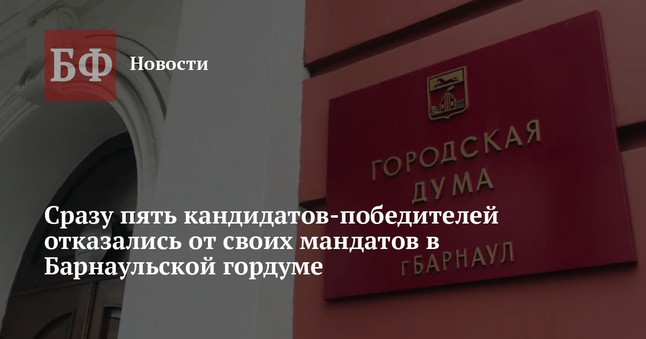 В ГАС Выборы появилась информация о перераспределении мандатов кандидатов-списочников, прошедших в Барнаульскую гордуму. В общей сложности пять человек от четырех партий решили отказаться от места в представительном органе, предоставив это право другим кандидатам. Очевидно, новый состав БГД можно считать окончательно очерченным.