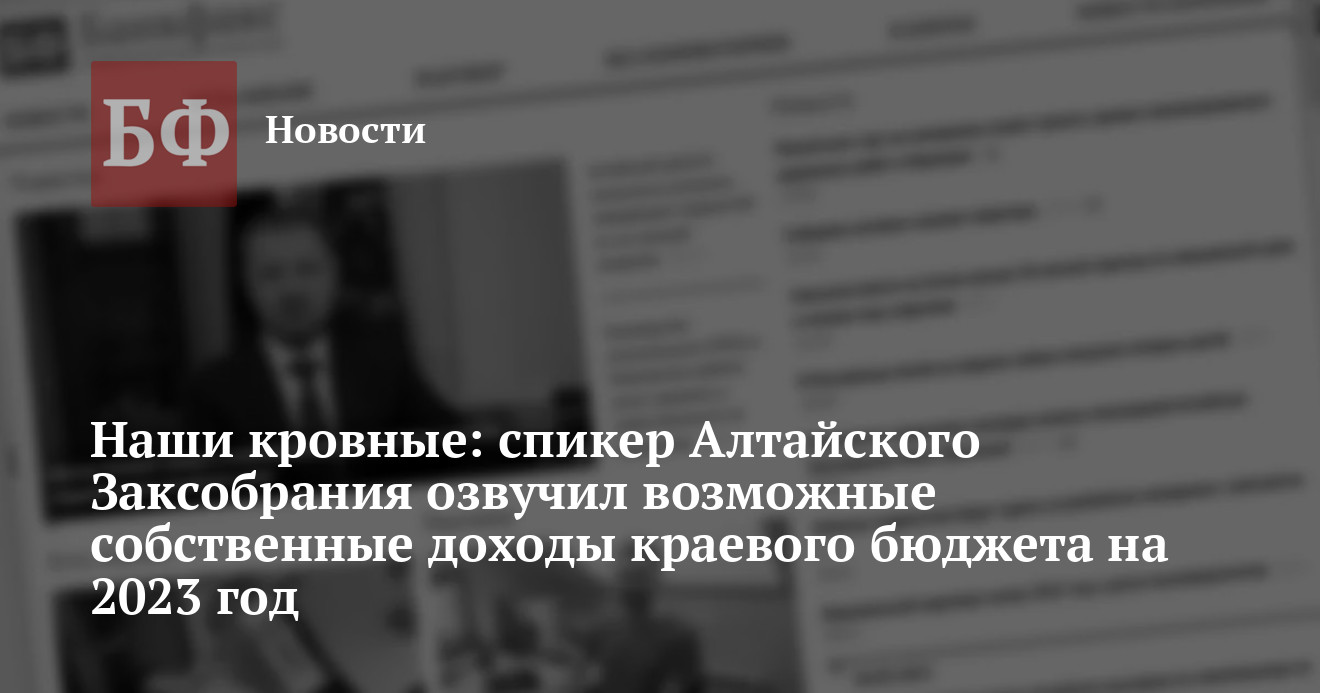 Депутаты Алтайского Заксобрания готовятся к обсуждению параметров бюджета края на 2023 год. Во время интернет-конференции на сайте парламента спикер Александр Романенко рассказал о том, как проходит эта работа, и предварительно назвал сумму собственных доходов казны. Предполагается, что она превысит плановый показатель 2022 года на 13,5%.